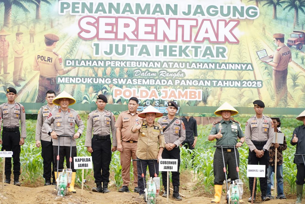 Penanaman jagung serentak tersebut merupakan upaya Polri dalam rangka mendukung ketahanan pangan menjaga swasembada pangan diseluruh wilayah Indonesia serta mendukung program Pemerintah.Untuk di Provinsi Jambi, penanaman bibit Jagung sendiri yang dilaksanakan Polda Jambi bertempat di RT. 35 Kelurahan Paal Lima, Kecamatan Kota Baru, Kota Jambi.