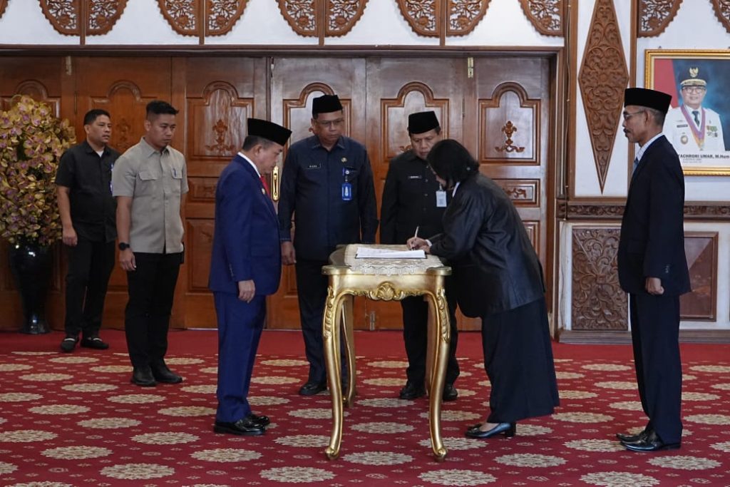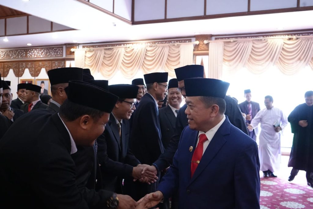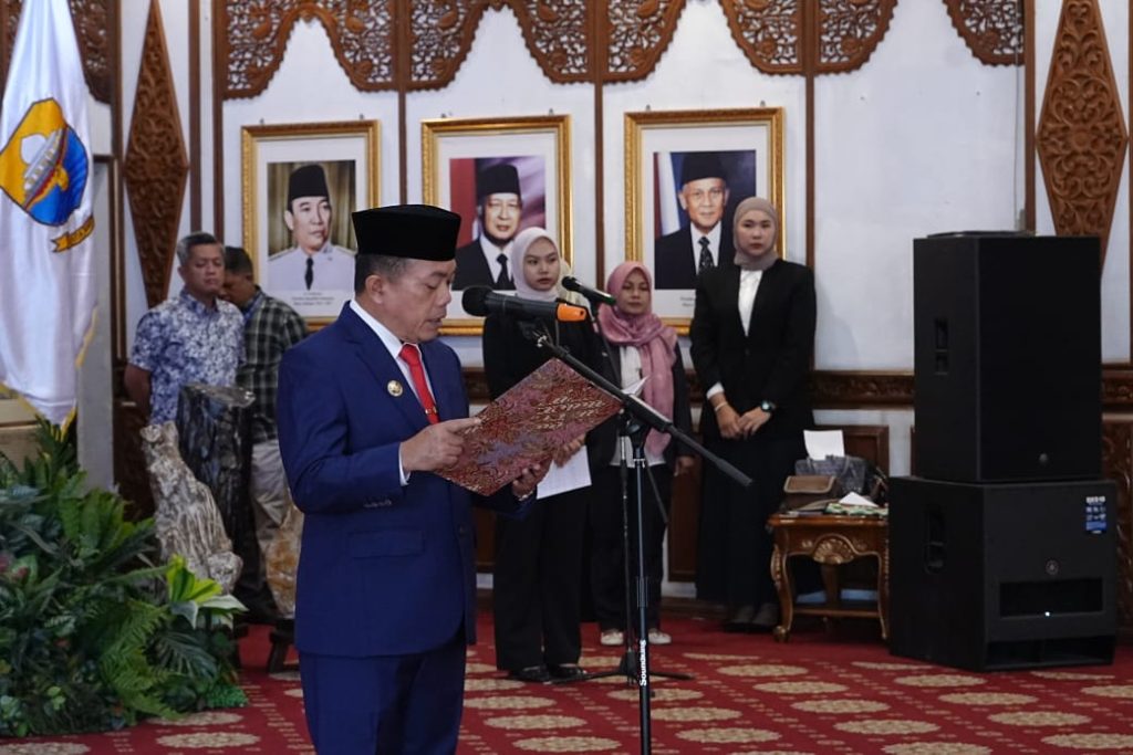 azranews.com, Jambi – Gubernur Jambi Dr. H. Al Haris, S.Sos, MH resmi melantik dan mengambil sumpah/janji 101 pejabat yaitu 18 Pejabat Fungsional dan 83 Kepala Sekolah di lingkup Pemerintah Provinsi Jambi, bertempat di Auditorium Rumah Dinas Gubernur, Jum’at (24/01/2024) pagi.