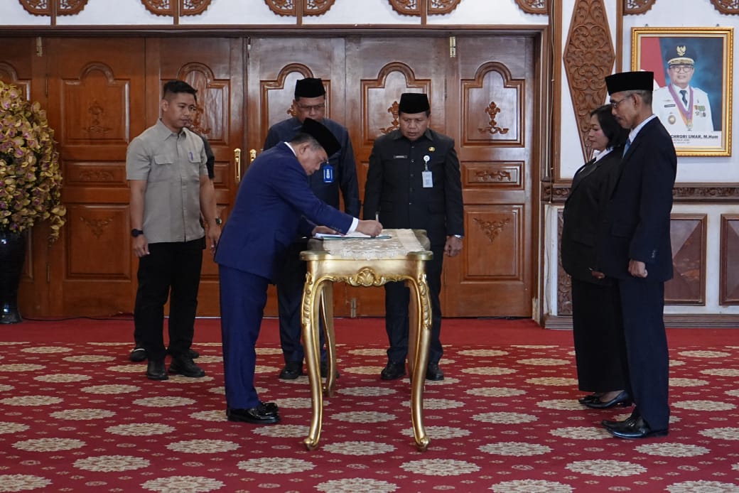 azranews.com, Jambi – Gubernur Jambi Dr. H. Al Haris, S.Sos, MH resmi melantik dan mengambil sumpah/janji 101 pejabat yaitu 18 Pejabat Fungsional dan 83 Kepala Sekolah di lingkup Pemerintah Provinsi Jambi, bertempat di Auditorium Rumah Dinas Gubernur, Jum’at (24/01/2024) pagi.