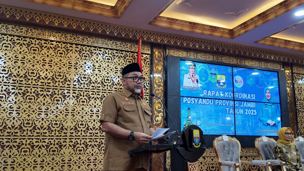 azranews.com, Jambi – Sekretaris Daerah (Sekda) Provinsi Jambi Dr. H. Sudirman, SH, MH mengemukakan, keberadaan Posyandu upaya bersama untuk mencerdaskan anak bangsa dalam peningkatan SDM yang lebih luas lagi. Demikian disampaikannya saat membuka Rapat Koordinasi Posyandu dan Sosialisasi SK Tim Pembina Posyandu Provinsi Jambi Tahun 2025-2029, bertempat di Ruang Pola Kantor Gubernur Jambi, Selasa (18/03/2025) pagi.