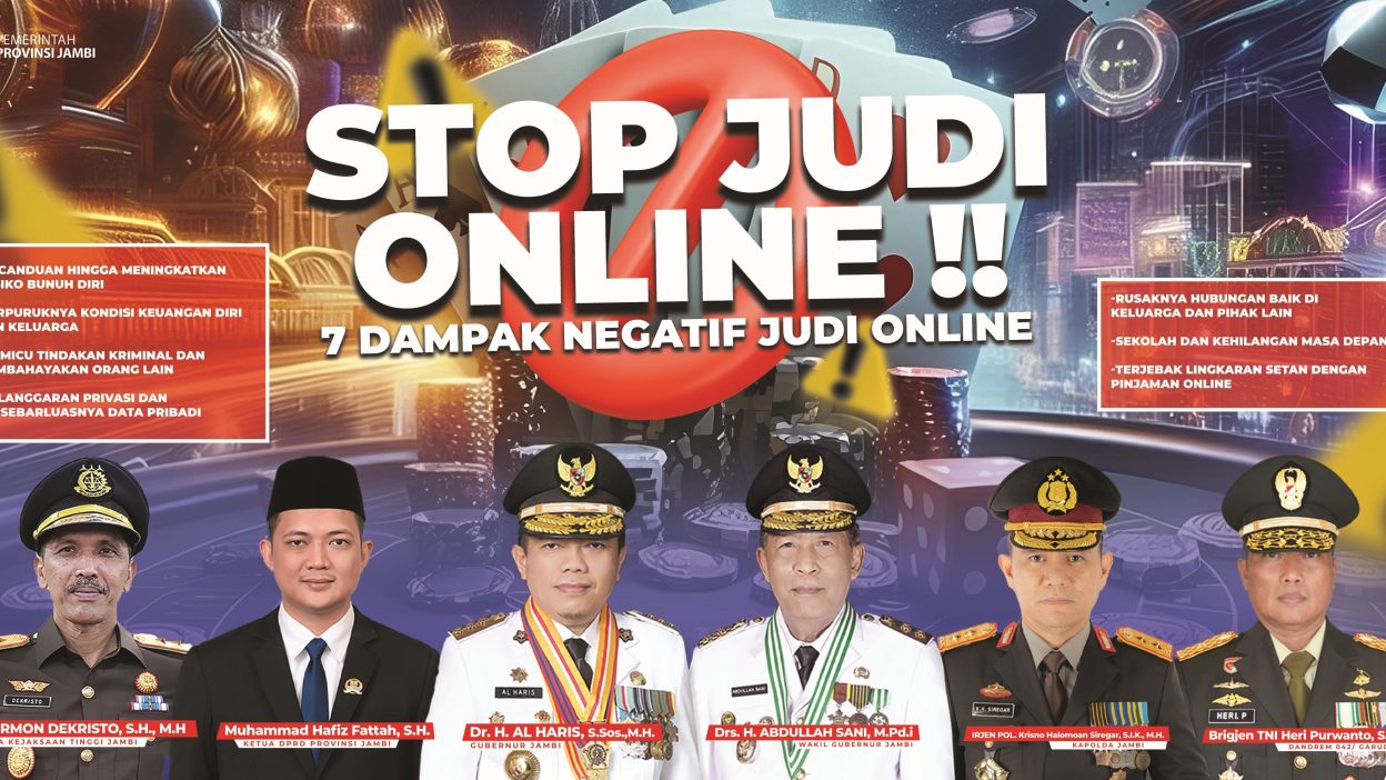 Gubernur Jambi saat ini secara masif dan gencar-gencarnya melakukan upaya-upaya dalam memerangi Judi online diantaranya berupa kegiatan sosialisasi dan himbauan melalui dialog TV, memasang baliho-baliho, sosialisasi melalui media online, media cetak, media tv, media radio, kemudian khusus ASN dilingkup Provinsi Jambi dengan mengeluarkan SE No 4800 Tahun 2024 tentang Larangan bagi ASN Terlibat Judi Online atau sejenisnya tertanggal 27 Juli 2024 dan puncaknya Deklarasi dan ikrar yang dipimpin Gubernur Jambi dan Didampingi Forkompinda yang pesertanya adalah ribuan siswa SMA/SMK bersama para guru di GOR Kota Baru Jambi pada tgl 16 April 2025 yang lalu dengan ikrar perang terhadap Judi Online.