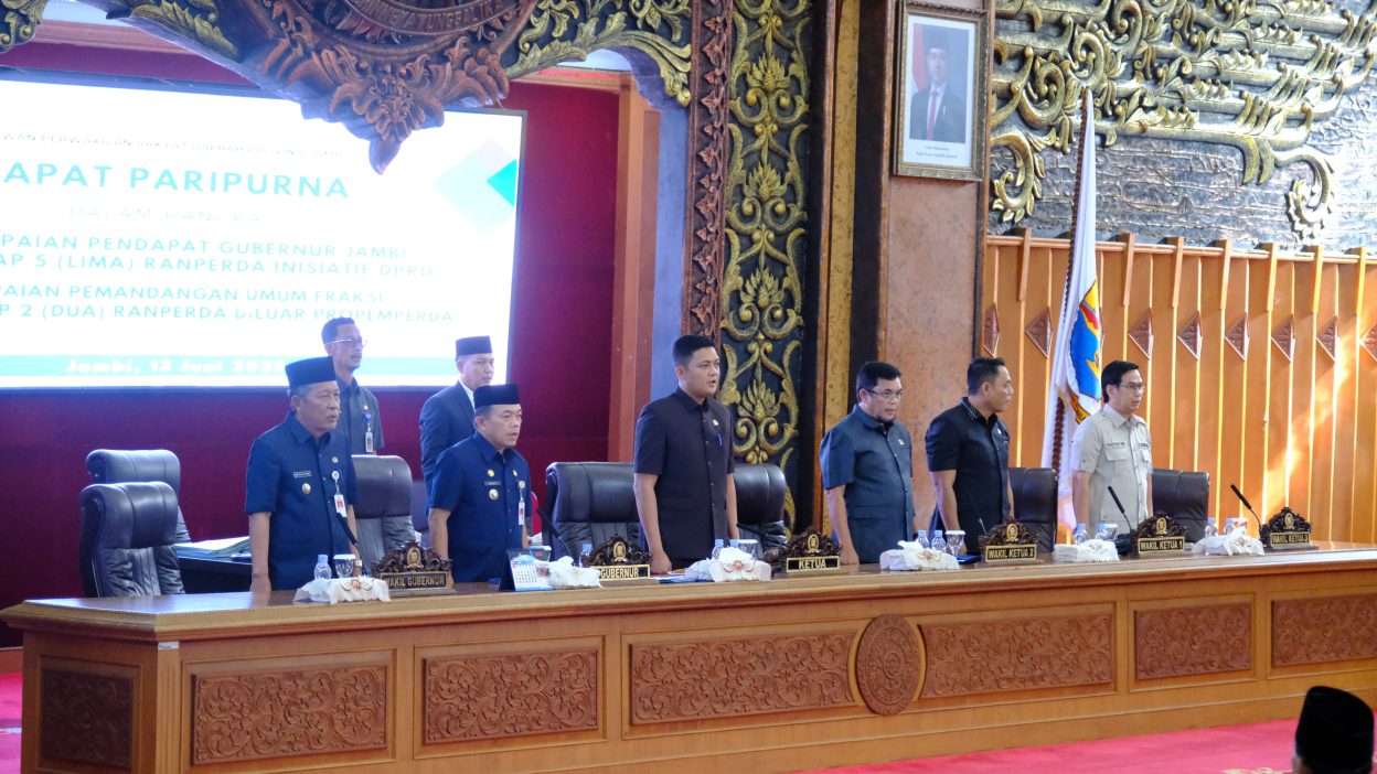 Hal tersebut disampaikan Gubernur saat menghadiri rapat paripurna DPRD Provinsi Jambi, tentang Penyampaian Pendapat Gubernur Jambi terhadap 5 (Lima) Ranperda Inisiatif DPRD Provinsi Jambi Tahun 2025, bertempat di Ruang Rapat Utama Gedung DPRD Provinsi Jambi, Jum’at (13/06/2025) sore.