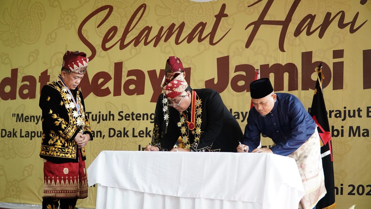 “Inilah pertanda Islam di Jambi maka mulailah adat Melayu Jambi, oleh karena itu kita perlu untuk melestarikannya agar adat ini betul-betul dipakai, dijunjung tinggi oleh masyarakat bumi Sepucuk Jambi Sembilan lurah,” pungkas Al Haris.