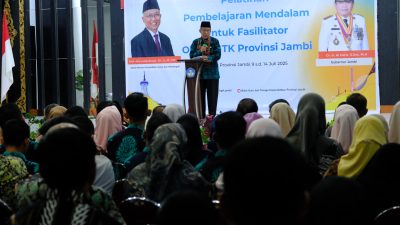 azranews.com, Jambi – Pemerintah Provinsi (Pemprov) Jambi memperingati 10 muharram 1447 H dengan berbagi kebahagiaan bersama 2.100 anak yatim piatu. Acara yang diadakan pada Minggu (06/07/2025) pagi ini berlangsung di lapangan halaman Kantor Gubernur Provinsi Jambi.