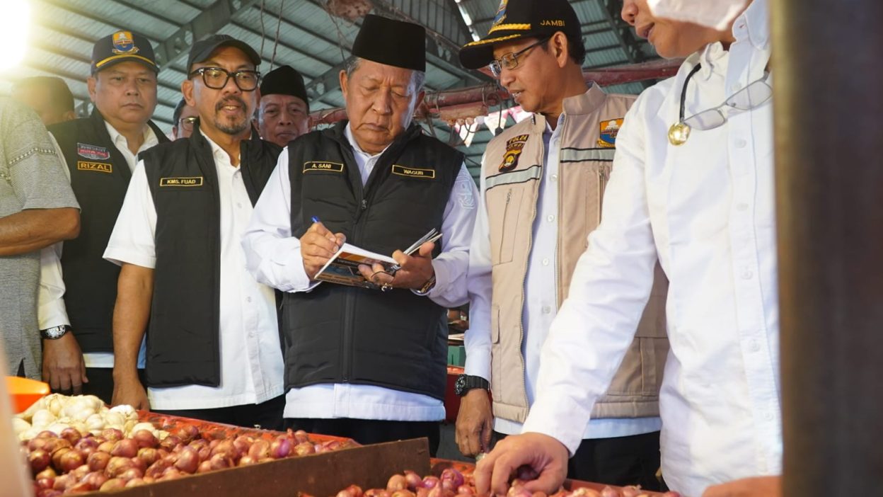 azranews.com, Jambi – Pemerintah Provinsi (Pemprov) Jambi bersama Polda Jambi dan Tim Satgas Pangan melakukan inspeksi mendadak (sidak) di Pasar Angso Duo, Kota Jambi, Rabu (11/03/2026). Sidak dilakukan untuk memantau harga serta memastikan ketersediaan bahan pangan menjelang Hari Raya Idul Fitri 1447 Hijriah.